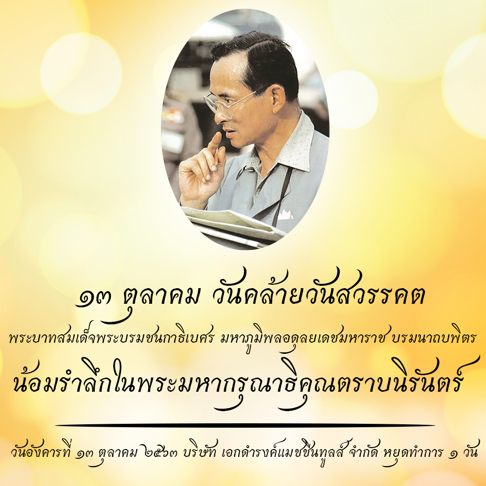 News๑๓ ตุลาคม ๒๕๖๓ วันคล้ายวันสวรรคต Posted on 12/10/202015/01/2022 by Editor โปรโมชั่นเดือนตุลาคม วันปิยมหาราช ๒๓ ตุลาคม