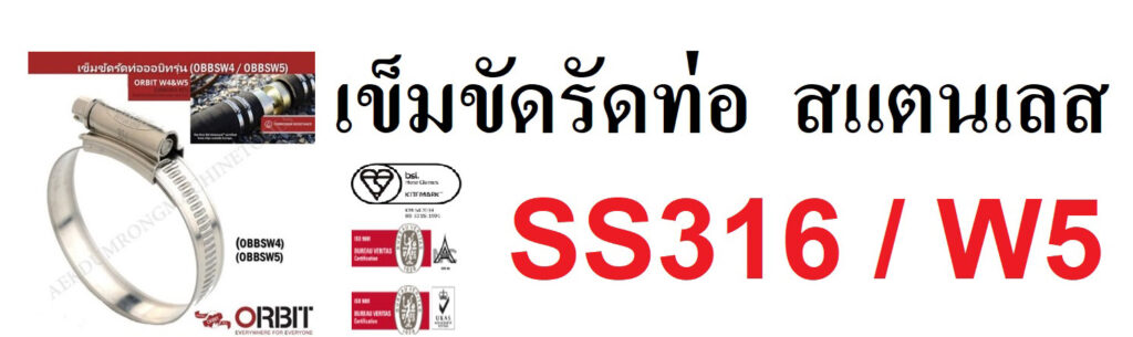 เข็มขัดรัดท่อ สแตนเลส SS316 / W5